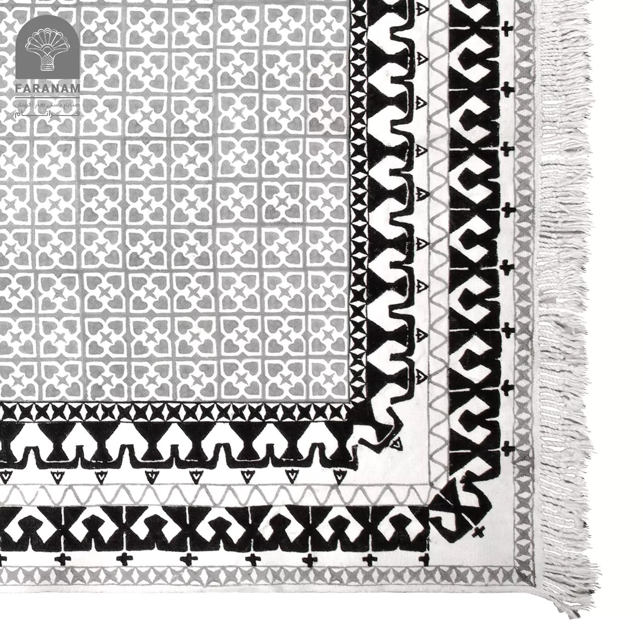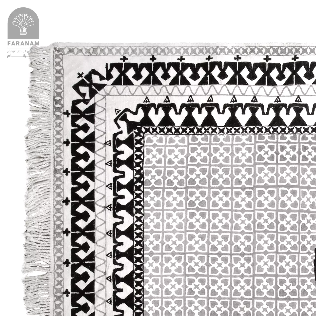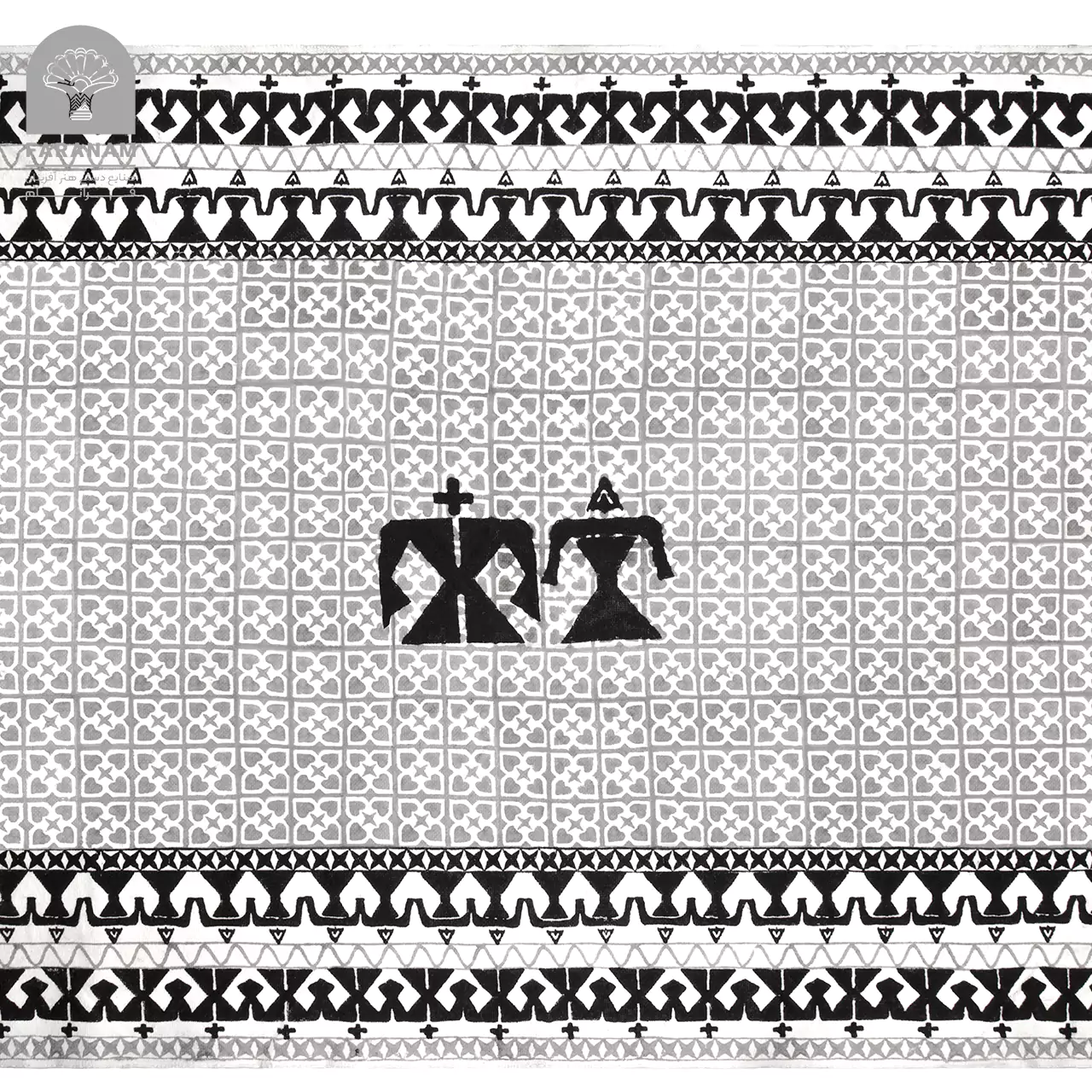 اجرای این اثر با تکنیک چاپ قلمکار با استفاده از قالب های چوبی، بر روی زمینه زیلو با بافت تمام پنبه و ابعد 100 در 150 سانتی متر انجام شده است.