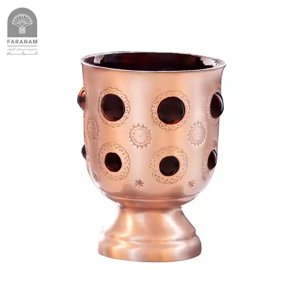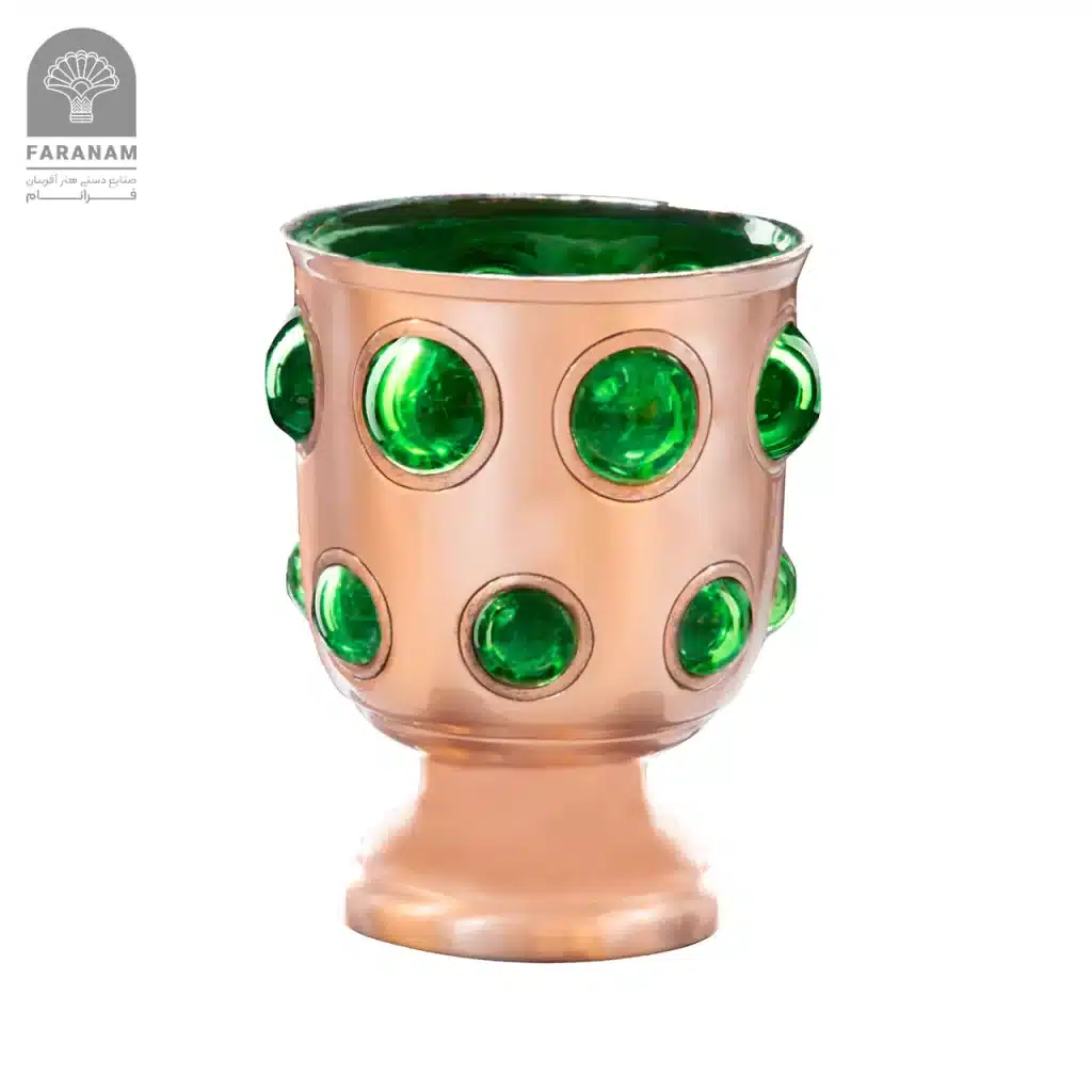 - تهیه شده از مس و شیشه و مزین شده با هنر قلمزنی